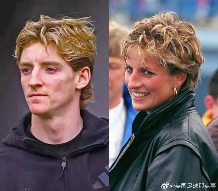 足球部落格-😯球迷发现安东尼-戈登的发型好像在复刻戴安娜王妃……