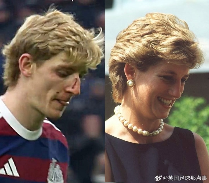 > 😯球迷发现安东尼-戈登的发型好像在复刻戴安娜王妃……
