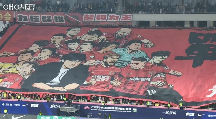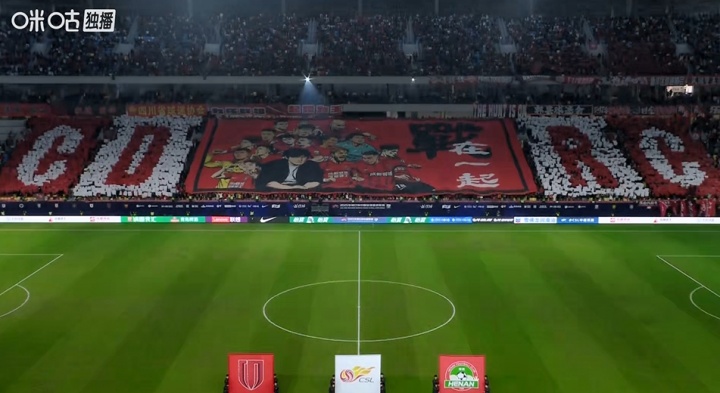 > 全力支持球队!蓉城看台赛前展示巨型TIFO“战在一起”