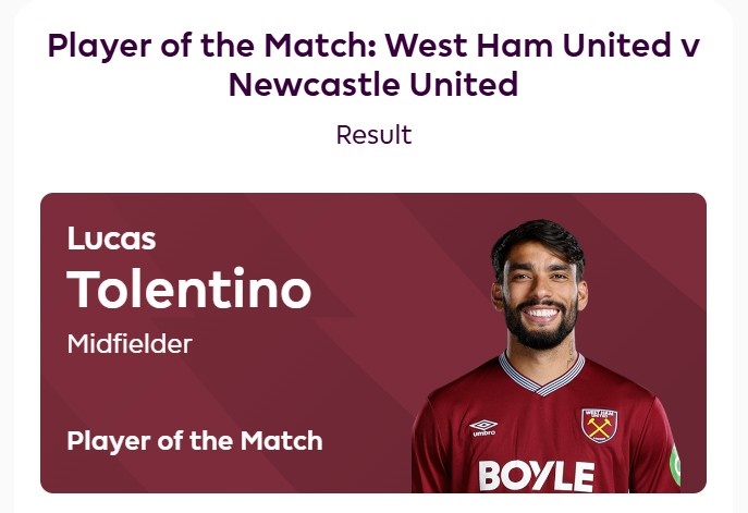 11月3日讯 英超第10轮西汉姆联主场作战 3-1击败纽卡,据赛后英超官方消息,帕奎塔被评为此役全场最佳球员,获43%的投票。