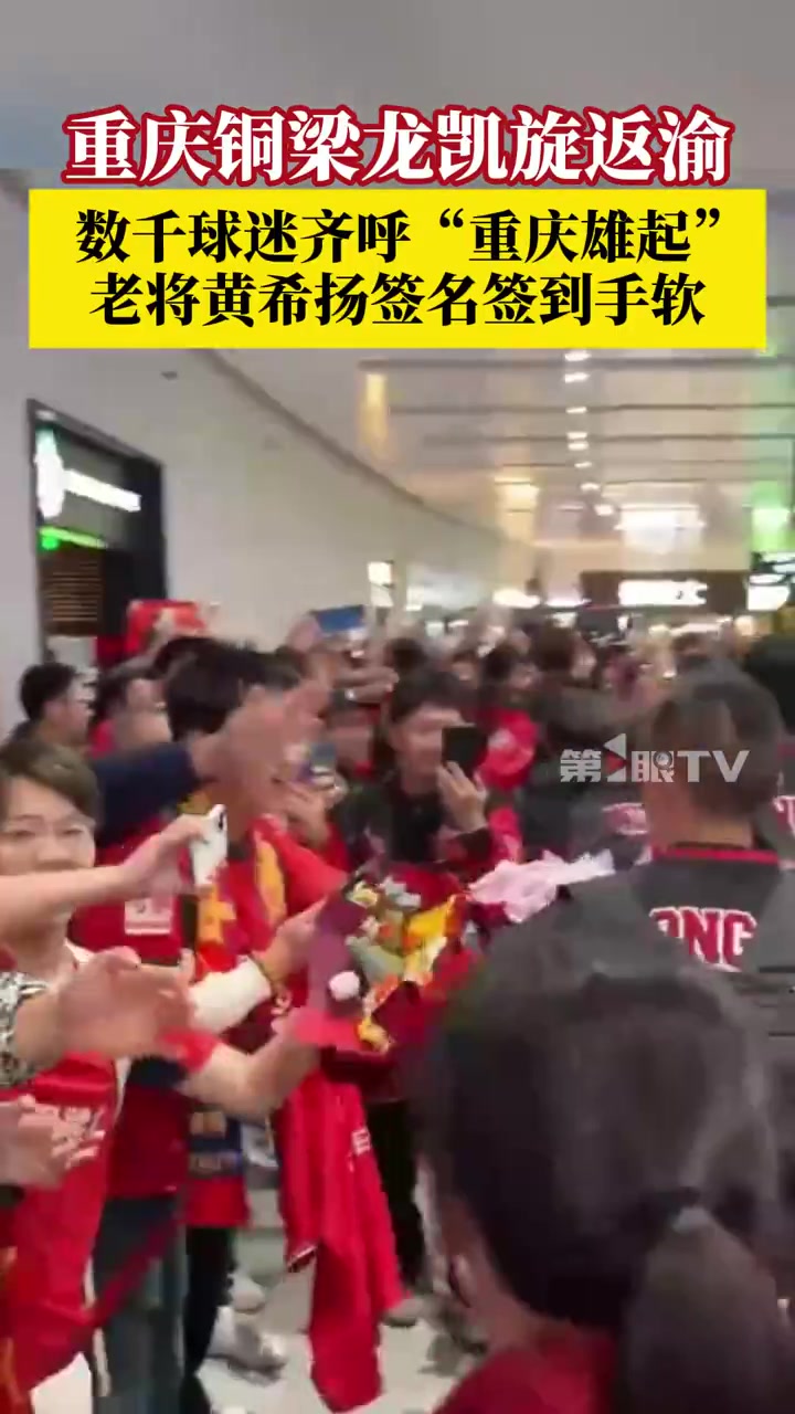 11月9日,苏超直播在线观看重庆铜梁龙凯旋返渝,数千球迷高声齐呼“重庆雄起”。老将黄希扬被团团围住,签名签到手软。