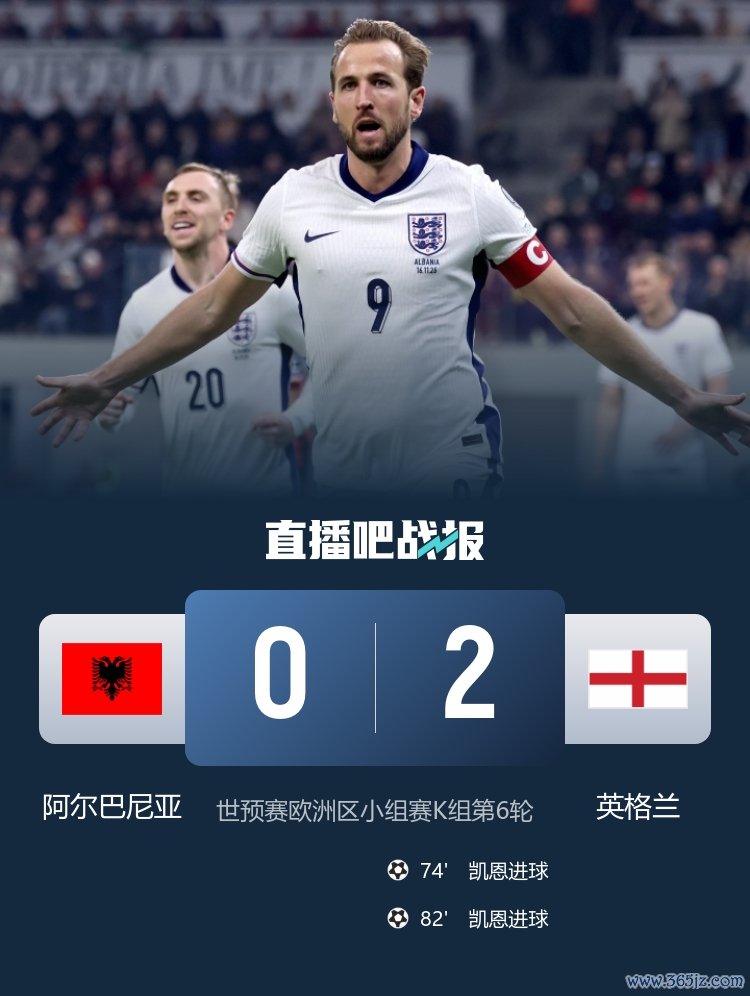 11月17日讯 世预赛凯恩连进两球,英格兰客场应战 2-0击败阿尔巴尼亚。