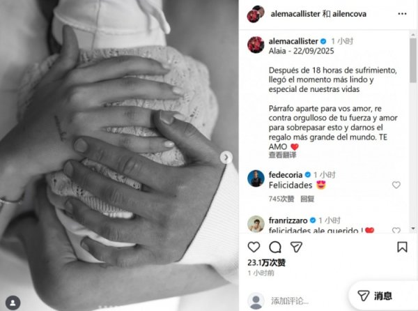 bet365足球投注技巧 9月24日讯 在社交媒体上,利物浦中场球员麦卡利斯特宣布自己和女友Ailen Cova的孩子降生。 麦卡利斯特写道:经过18小时的煎熬 ...