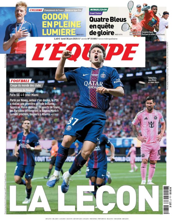 苏超比赛时间表全部 06月30日讯 巴黎圣日耳曼在世俱杯1/8总决赛 以4-0出回合梅西率领的迈阿密国际,赛后法国媒体《队报》评价了梅西和他的球队的表现。 在赛 ...